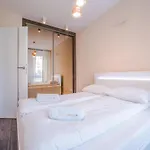 I liked this new apartment and its perfect location. The bed was very comfy, central heating, an ironing set and a work desk were useful. Had access to good size bathroom and kitchenette. I had a warm welcome from the host.